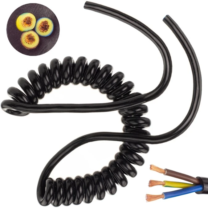 9. Przewód OMY spiralny H03VVH8-F 3x1 0,8m / 3,9m czarny 100.36