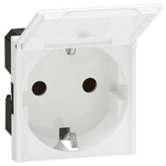 MOSAIC - Gniazdo 2P+Z SCHUKO 16 A - 250 V~ antybakteryjne z klapką - zaciski automatyczne - 2 modułowy - Biały /10 szt./