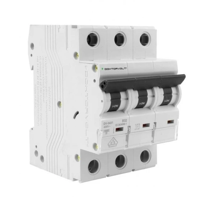 3. Wyłącznik nadprądowy S bezpiecznik 3-fazowy B32 (B 32A) 3-biegunowy 3P (400V AC) 3-modułowy 10kA VDE Doktorvolt 36.16