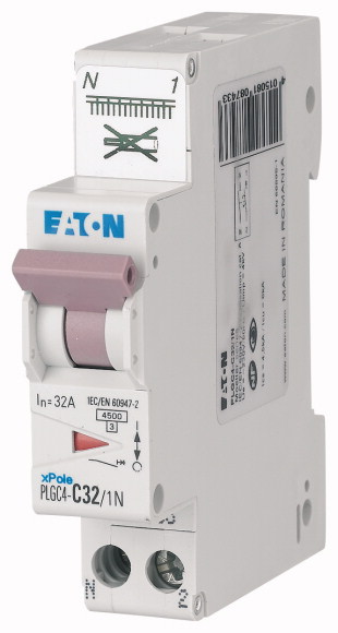 Wyłącznik nadprądowy MCB, Typ C, 1+N, 32A, na szynę DIN, Eaton PLGC4-C32/1N