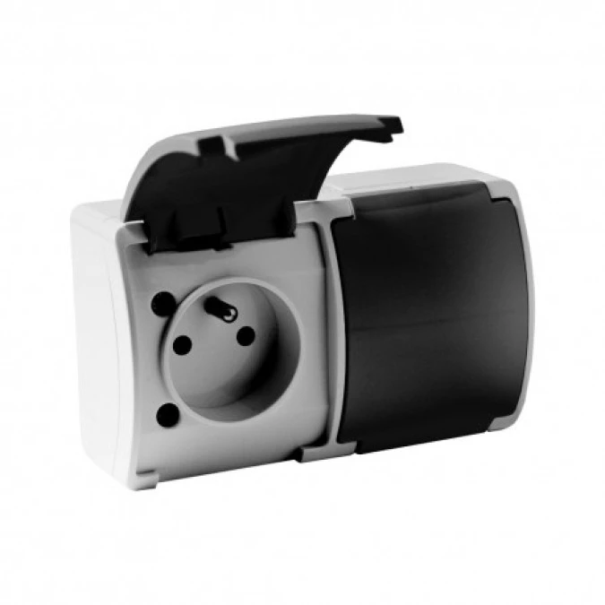 Gniazdo podwójne z uziemieniem natynkowe IP44 popiel/grafit 162-08 DV 8172