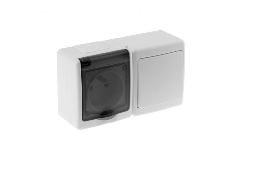 BETA Wyłącznik hermetyczny pojedynczy, jednobiegunowy i gniazdo BETA pojedyncze, białe, dymna klapka, IP44 /D.3112GW/1/