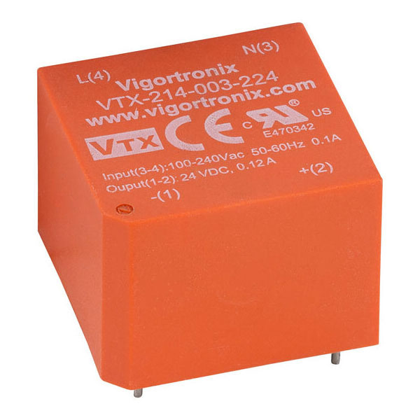 Vigortronix VTX-214-003-224 3W Miniature SMPS AC-DC Converter 24V Output