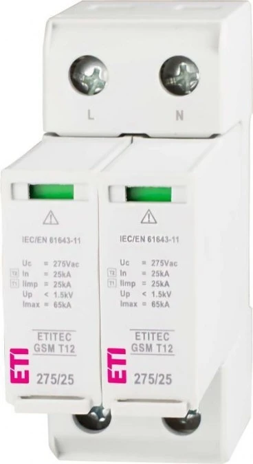 1. Ogranicznik przepięć typ T1+T2 (B+C) ETITEC GSM T12 275/25 2+0 iskiernik Iimp=25kA 002440604 1159.03