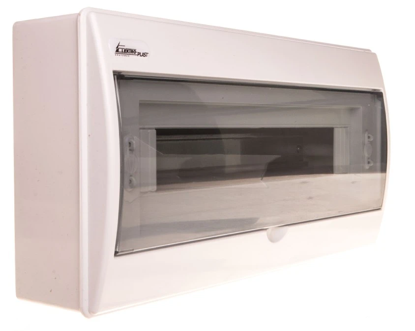 12. Rozdzielnica natynkowa 18 modułowa 1x18M drzwi transparentne IP40 RN-18 Fala (N+PE) 7.7 ELEKTRO-PLAST 73.73