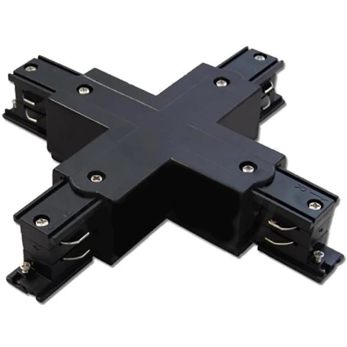 Łącznik Poczwórny Krzyżowy do Listw Szynowych Trójfazowych Czarny