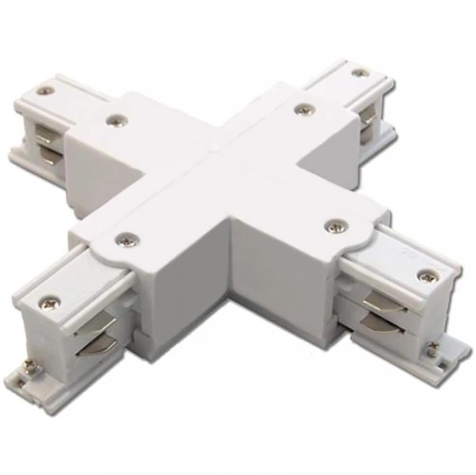 Łącznik Poczwórny Krzyżowy do Listw Szynowych Trójfazowych Biały