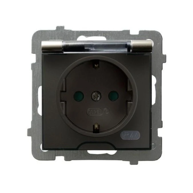 3. AS Gniazdo bryzgoszczelne z/u Schuko IP44 z przesłonami klapka przezroczysta satyna light GPH-1GSP/m/45/d 56.52