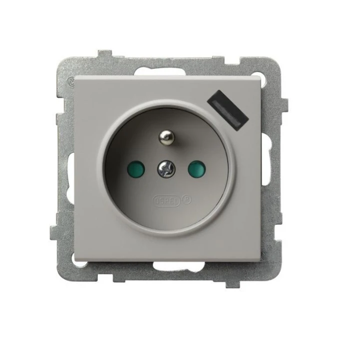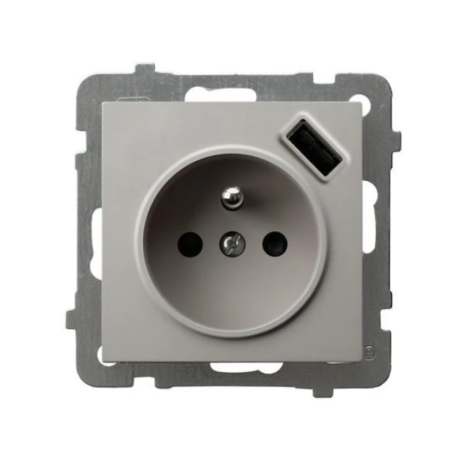 1. AS Gniazdo pojedyncze z uziemieniem z przesłonami torów prądowych, z ładowarką USB kaszmir GP-1GZPUSB/m/82 106.85