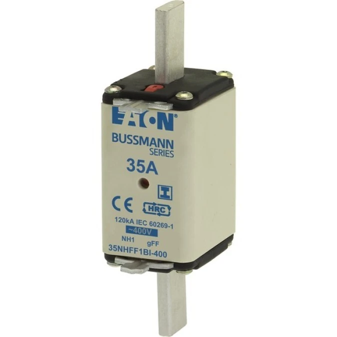 5. Wkładka bezpiecznikowa, nożowa, LV, 35 A, AC 400 V, NH1, gFF, IEC, podwójny wskaźnik, uchwyty izolowane, 35NHFF1BI-400 78.74