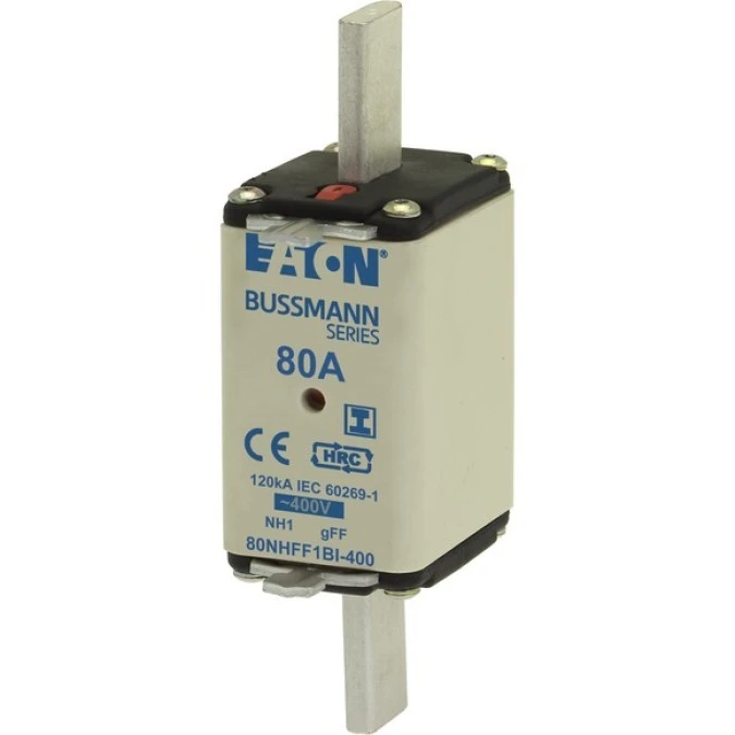 6. Wkładka bezpiecznikowa, nożowa, LV, 80 A, AC 400 V, NH1, gFF, IEC, podwójny wskaźnik, uchwyty izolowane, 80NHFF1BI-400 78.74