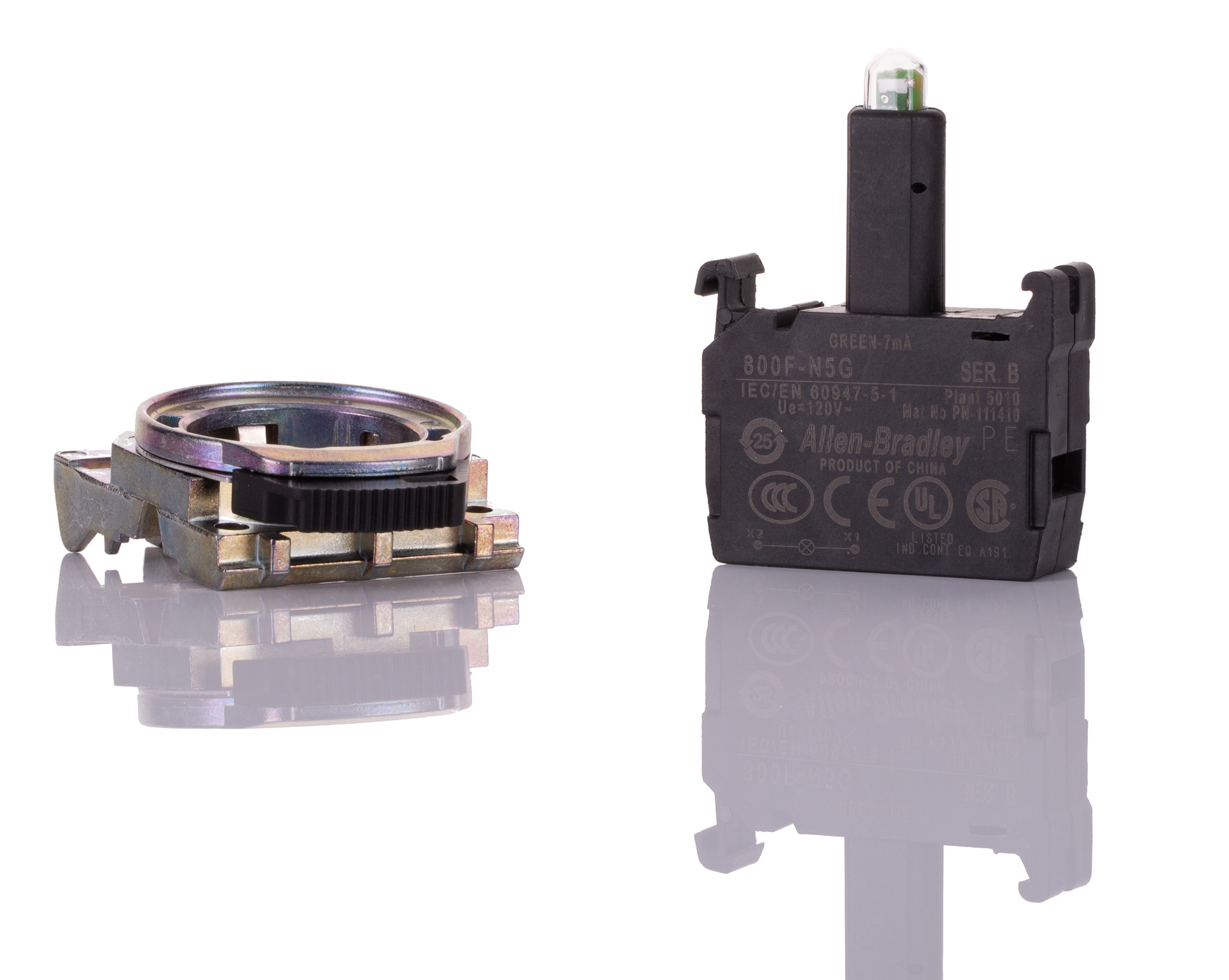 Moduły podświetlające styków Allen Bradley 800F blokada Blok świetlny 120V ac LED, przyłącze śrubowe kolor Zielony