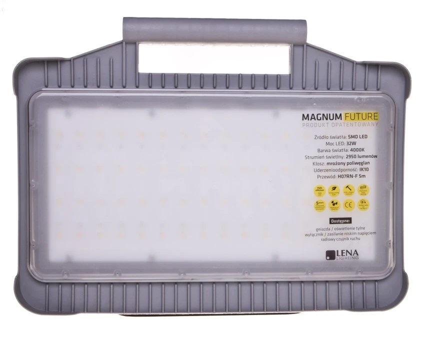 12. Lampa robocza / naświetlacz budowlany MAGNUM FUTURE LED 32W 4300lm 4000K z gniazdami + wyłącznik 247040 458.06