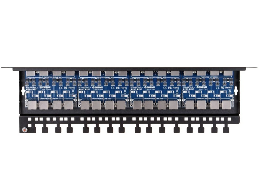 16-kanałowy panel zabezpieczający serii PRO z ochroną przepięciową POE EWIMAR PTF-516R-PRO/PoE