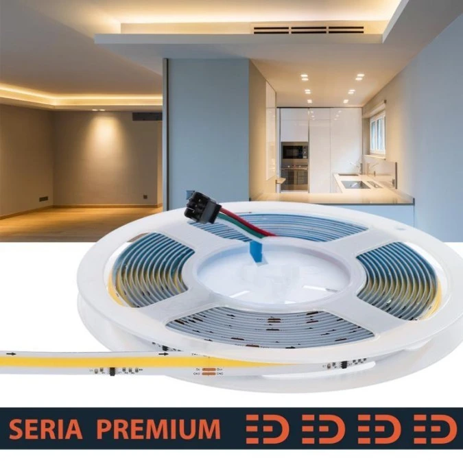 5. Taśma Premium 12V Cob Slim 5Mm Cct 608Led 1200Lm Ra90 (5) Tunable White 77.77