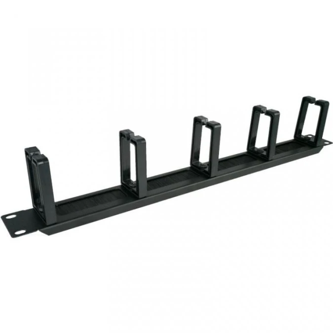 6. Organizator kabli RACK 19 1U metalowy czarny Alantec z plastikowymi uchwytami z przepustem szczotkowym 43.22