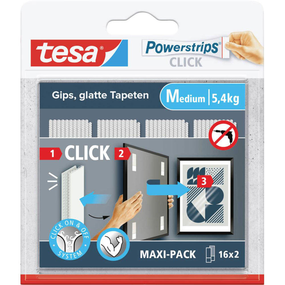 1. tesa 77721-00020-00 Powerstrips CLICK Adhesive Hooks 80 mm x 20 mm 16 Pair 76.96