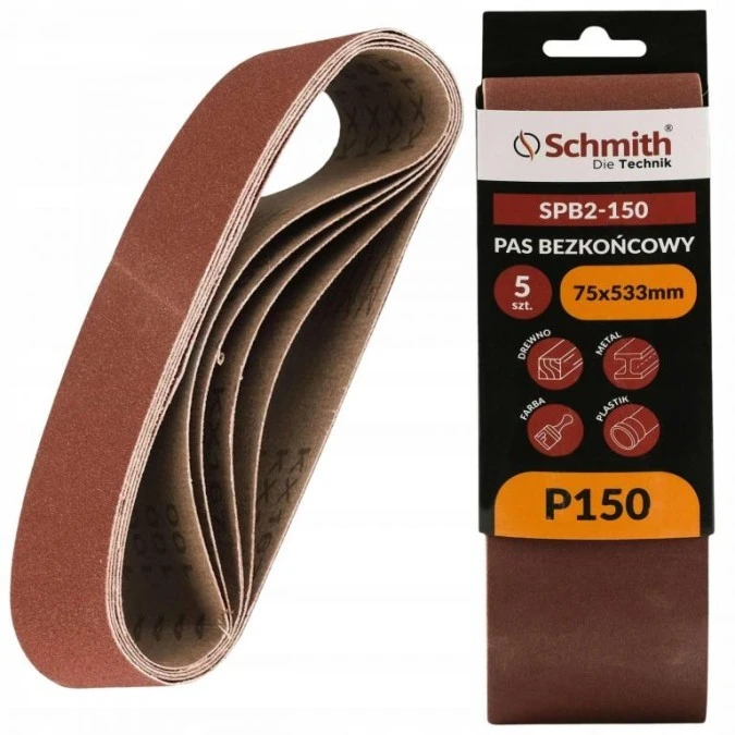 Pas bezkońcowy taśma papier ścierny P150 75x533mm 5szt Schmith