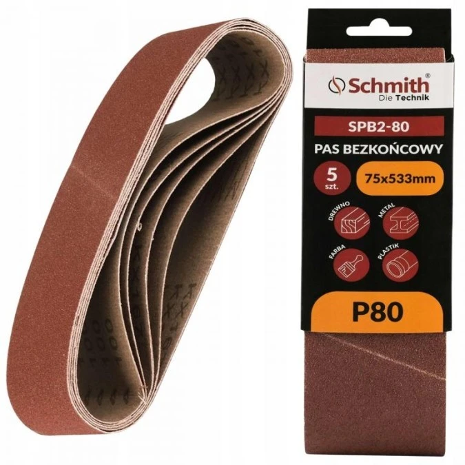 13. Pas bezkońcowy taśma papier ścierny P80 75x533mm 5szt Schmith 16.51