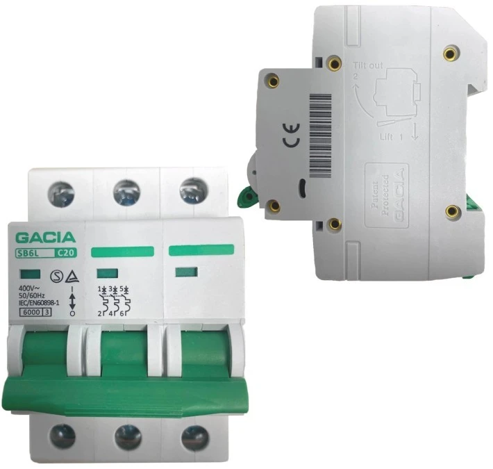 Bezpiecznik Nadmiarowo Prądowy Wyłącznik Nadprądowy B 3P 20A 6kA 3faz Gacia