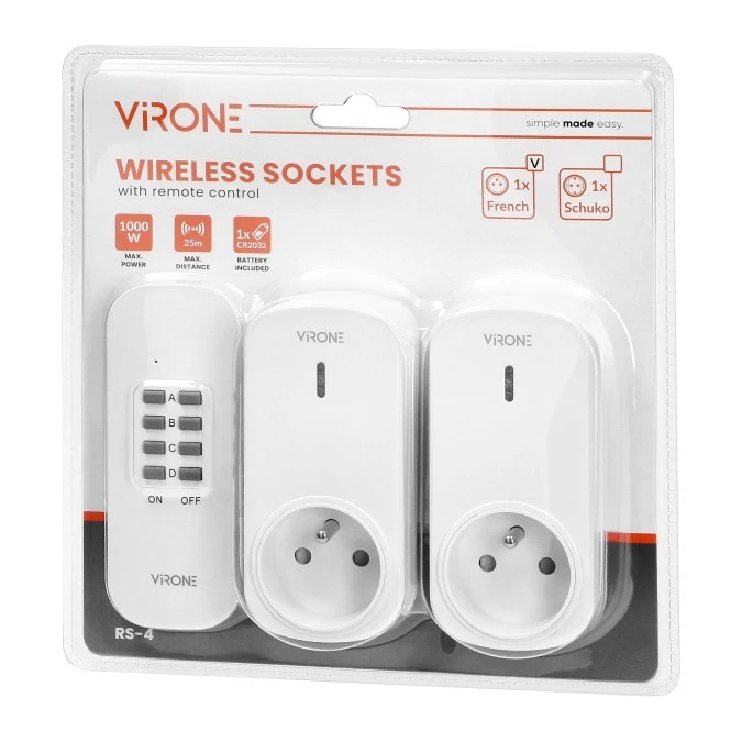 Zestaw bezprzewodowych gniazd sterowanych pilotem 2+1,RS-4