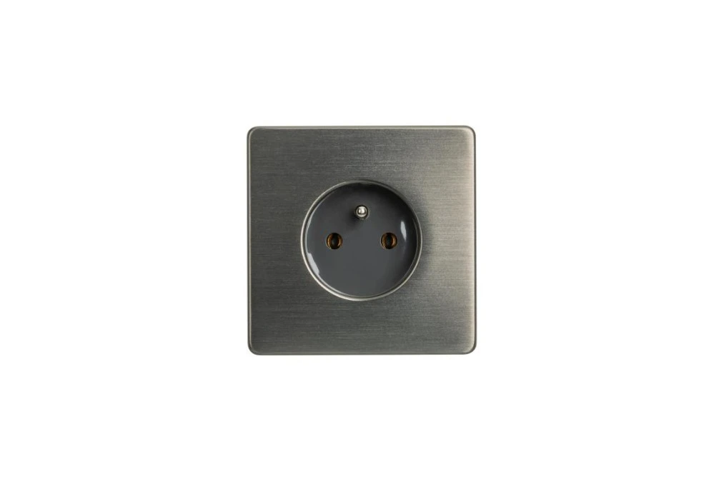 Gniazdko elektryczne szare pojedyncze ramka stal szczotkowana PVD Gunmetal GN-SNPG01S