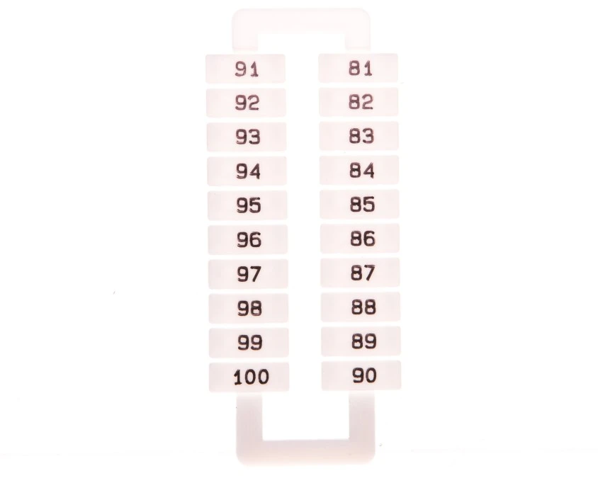 1. Oznacznik do złączek szynowych EURO 2,5-70mm2 /81-100/ biały 43192 (nadruk 81-100)/1 blister=20 szt/ 8.29