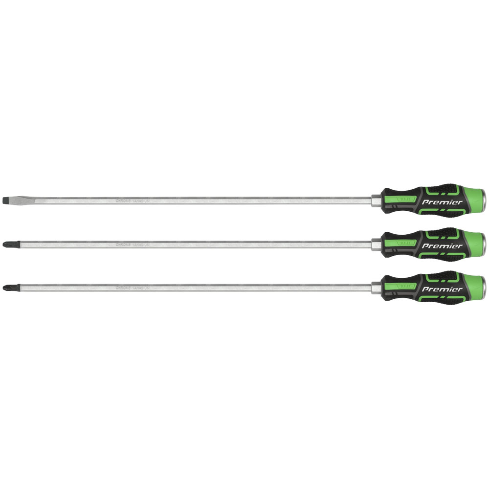 Sealey AK4942HV Premier Extra-Long Hammer-Thru Scrwdrver Set 450mm 3pc HiVis Grn