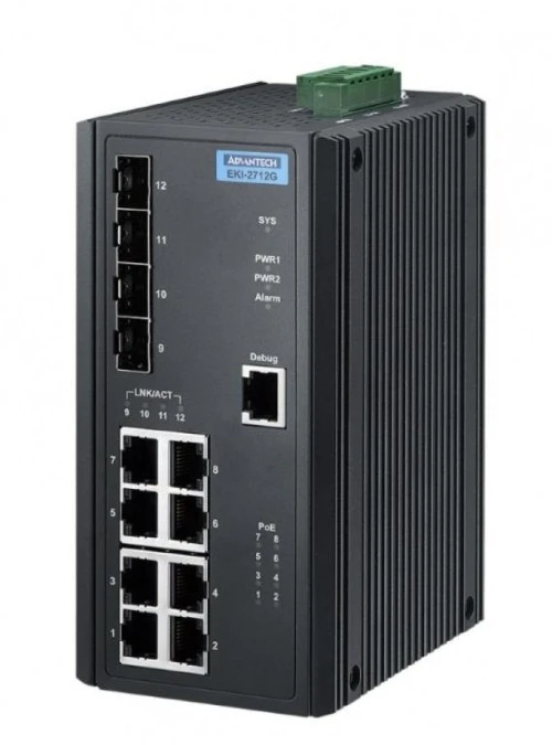 Przemysłowy switch z gigabitowymi portami PoE - 8 portów gigabit PoE/PoE+, 4 porty SFP EKI-2712G-4FPI-AE