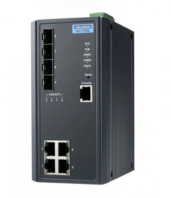 Zarządzalny switch - 4 porty Fast Ethernet, 4 porty gigabit SFP EKI-7708E-4F-AE