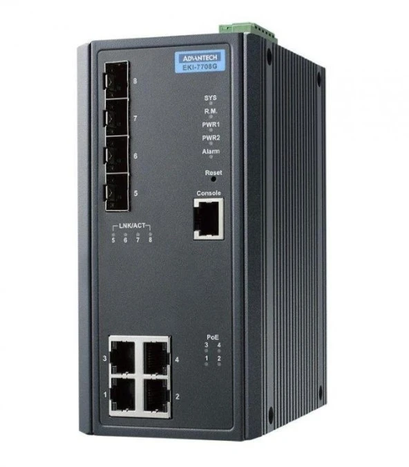 19. Zarządzalny switch gigabitowyPoE - 4 porty FE PoE/PoE+, 4 porty SFP EKI-7708G-4FPI-AE 5640.76