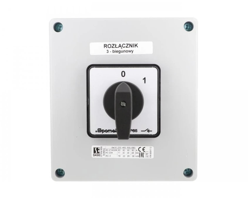 1. Łącznik krzywkowy 80A rozłącznik 0-1 3 - biegunowy w obudowie OB17 SK80-2.8211\OB17 345.91