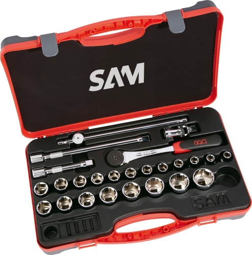 Zestaw nasadek rozmiar napędu 1/2 cala elementy: 25 SAM typ napędu Kwadratowy