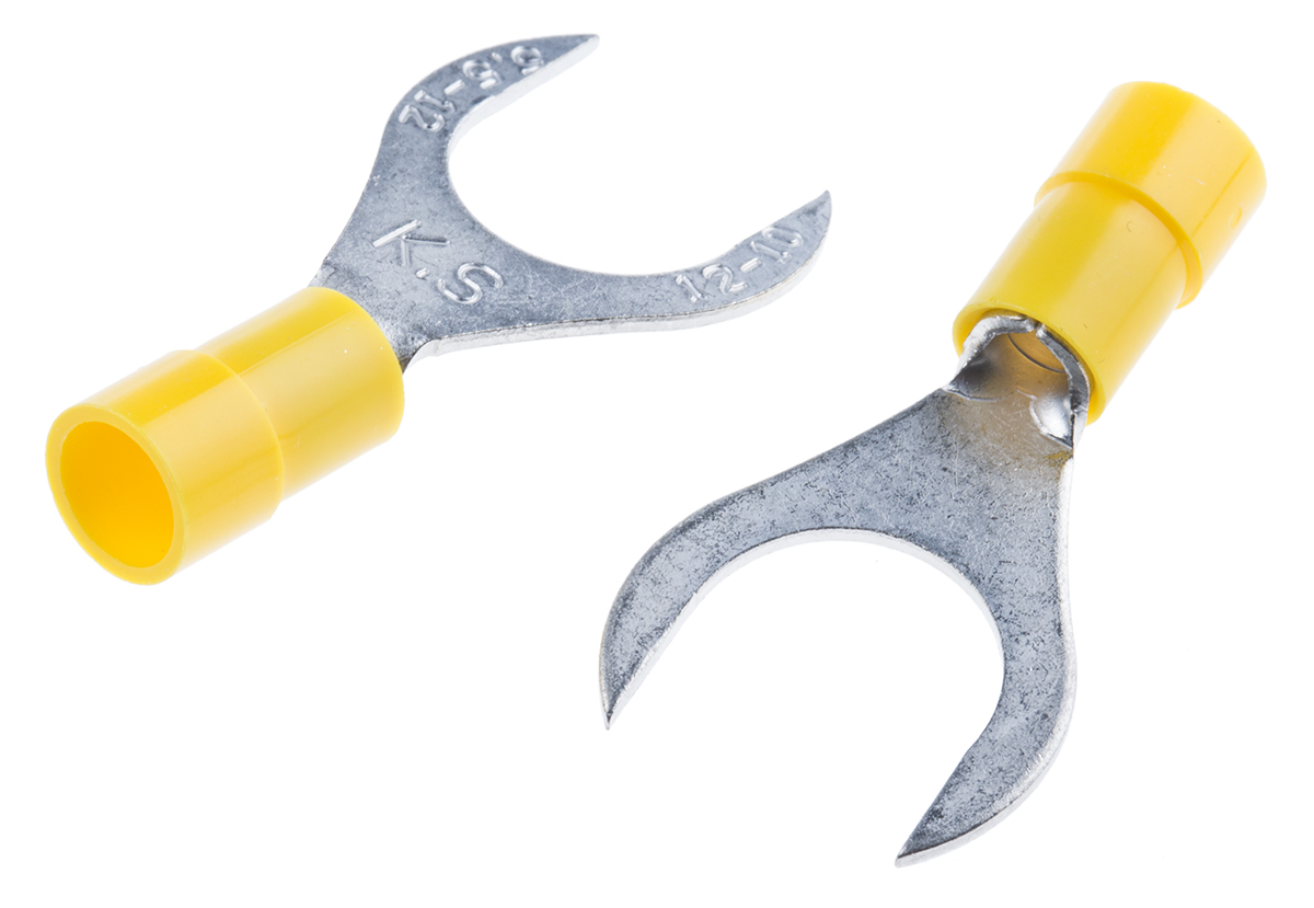 1. Konektor zaciskowy płaski Izolowane, M12, Żółty 10AWG 6mm² 12AWG 4mm² RS PRO 2.62 x100