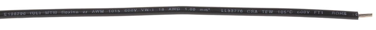 9. Przewód montażowy 1 mm² Czarny Lapp PVC 17 AWG 600 V dł. 100m +70°C CSA, UL 495.42