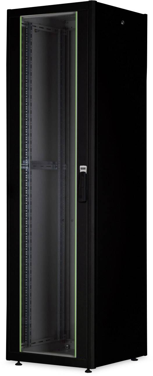 Szafa stojąca RACK 19" 42U 600x1000mm drzwi szklane czarna (złożona) NEKU FLR GREEN + wyposażenie