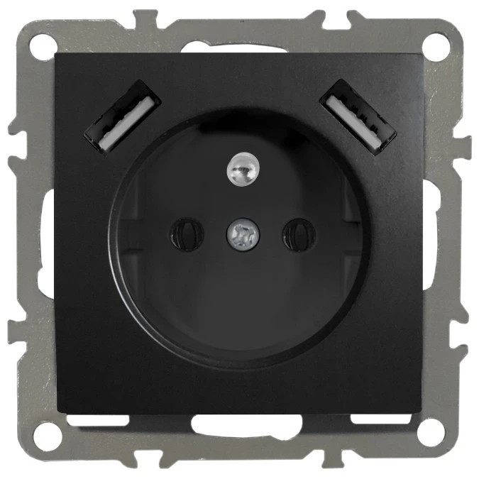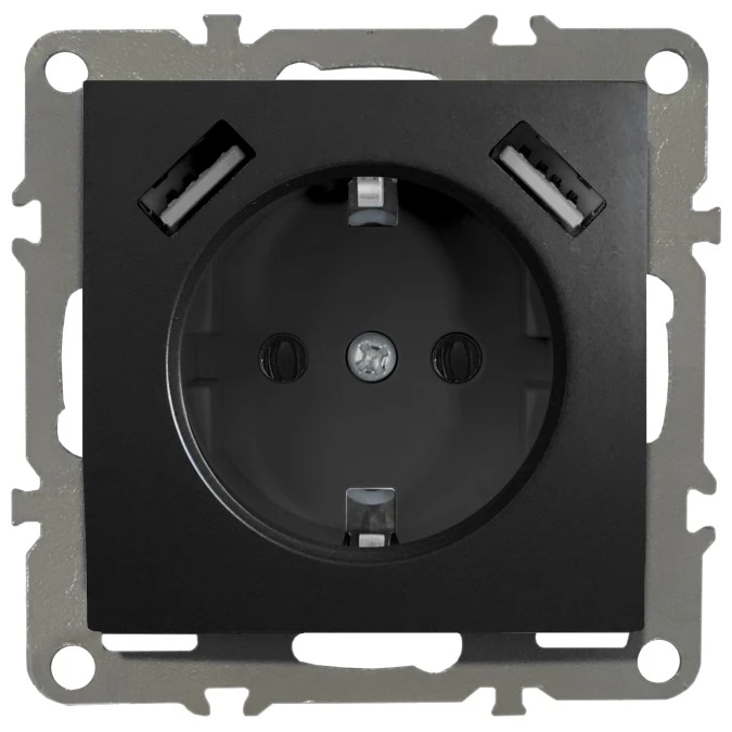 QUADRA Gniazdo z/u + 2x USB 2.1A czarne matowe