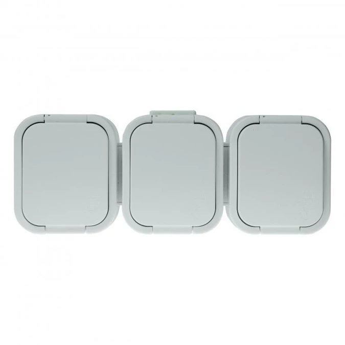 8. Gniazdo potrójne n/t 3x2P+Z, bryzgoszczelne z klapką B2, IP54, NT-316 B2, szary,OR-OE-7809/G 44.71