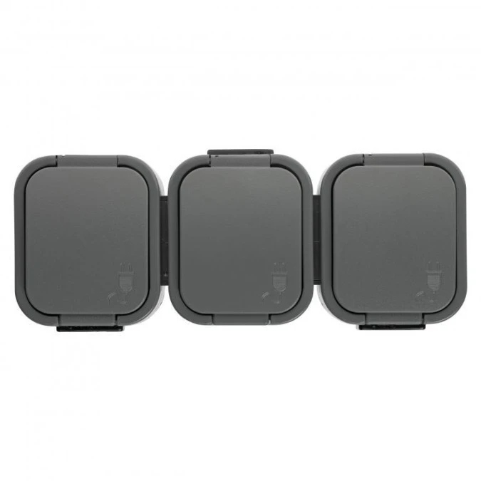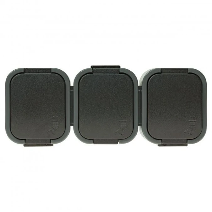 7. Gniazdo potrójne n/t 3x2P+Z, bryzgoszczelne z klapką B2, IP54, NT-316 B2, szary/czarny,OR-OE-7809/GB 44.71