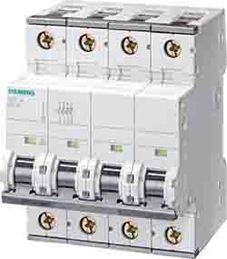 5. Wyłącznik nadprądowy MCB, Typ C, 4-biegunowy, 6A, 400V, na szynę DIN, Siemens, 5SY4 1157.21