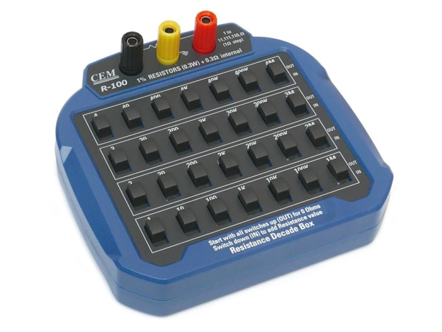 Rezystor dekadowy CEM Klasa 1 max napięcie 30V AC / 60V DC, Zakres od 1Om do 11,111,110Om R-100