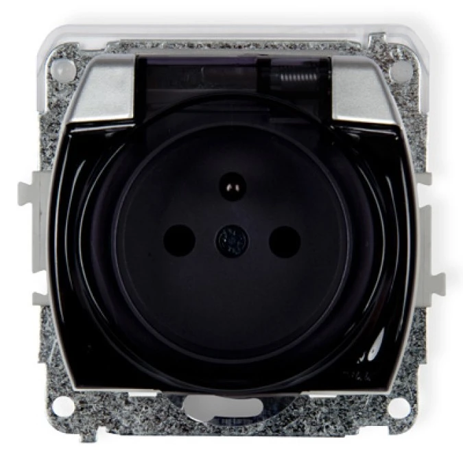 15. KARO Gniazdo pojedyncze z uziemieniem schuko IP44 z przesłonami zaciski gwintowe srebrny perłowy klapka dymna GPH-1SSP/m/43/d OS 27.29