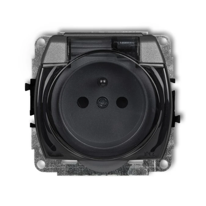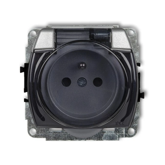 1. MINI Gniazdo hermetyczne z uziemieniem schuko (klapka dymna przesłony torów prądowych) grafitowy 11MGPB-1sdp KARLIK 27.04