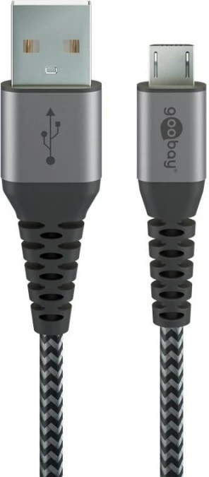 Kabel tekstylny Micro USB na USB-A z metalowymi wtyczkami ( szary / srebrny) 2 m - Długość kabla 2 m