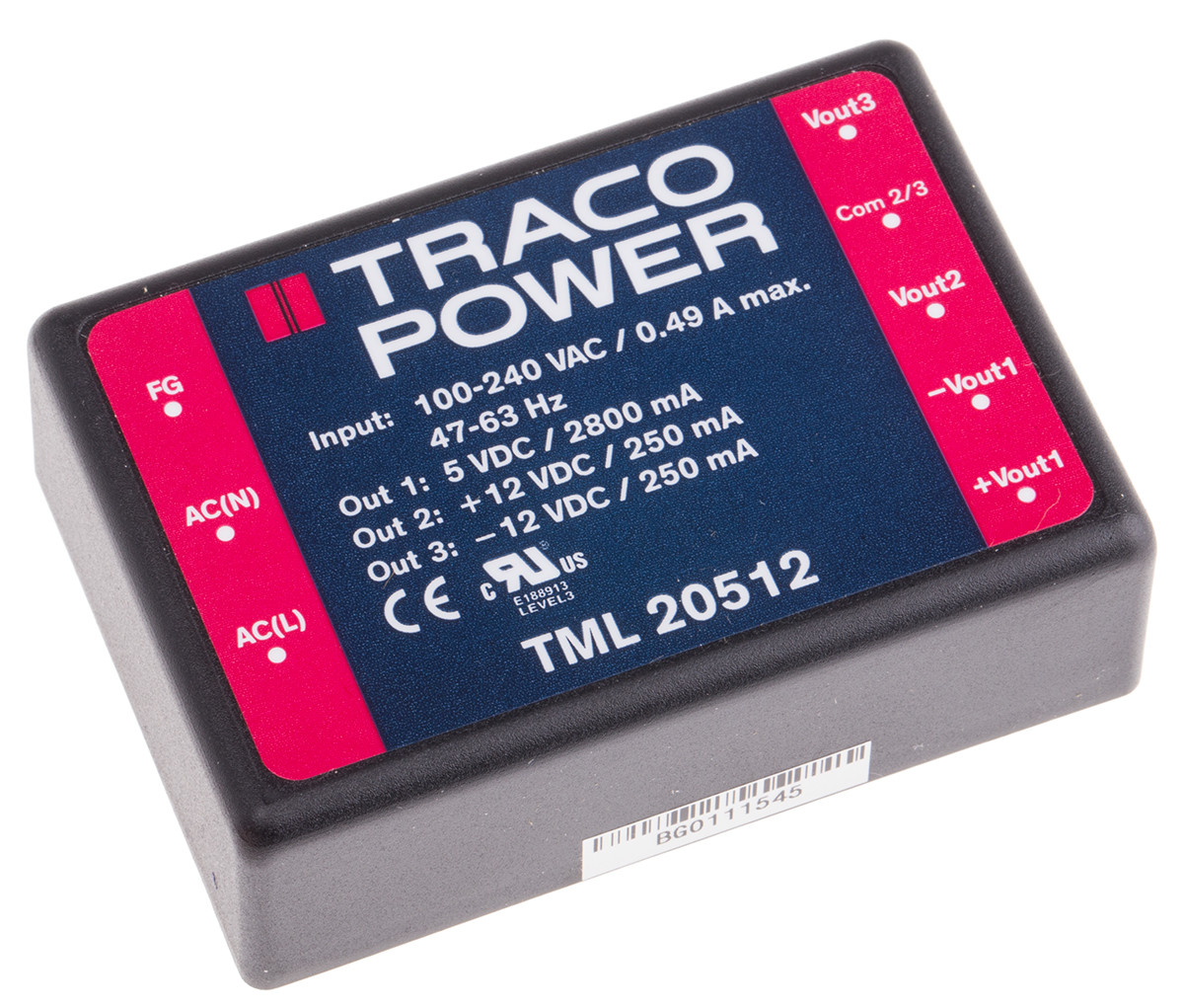 Zasilacz impulsowy nap. wyjściowe: 5 V dc, ±12 V dc 20W 2.8 A, 250 mA 3 -wyjścia nap. wejściowe: 100 → 375 V dc,