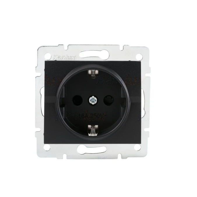 LOGI Gniazdo pojedyncze 2P+Z SCHUKO z przesłoną styków śrubowe Czarny mat 33606