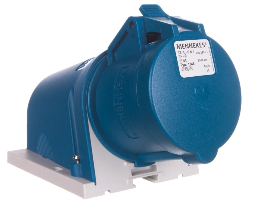 12. Gniazdo naścienne 1-częściowe 32A 3p 6h 230V IP44 zaciski bezśrubowe MEN1346 103.21