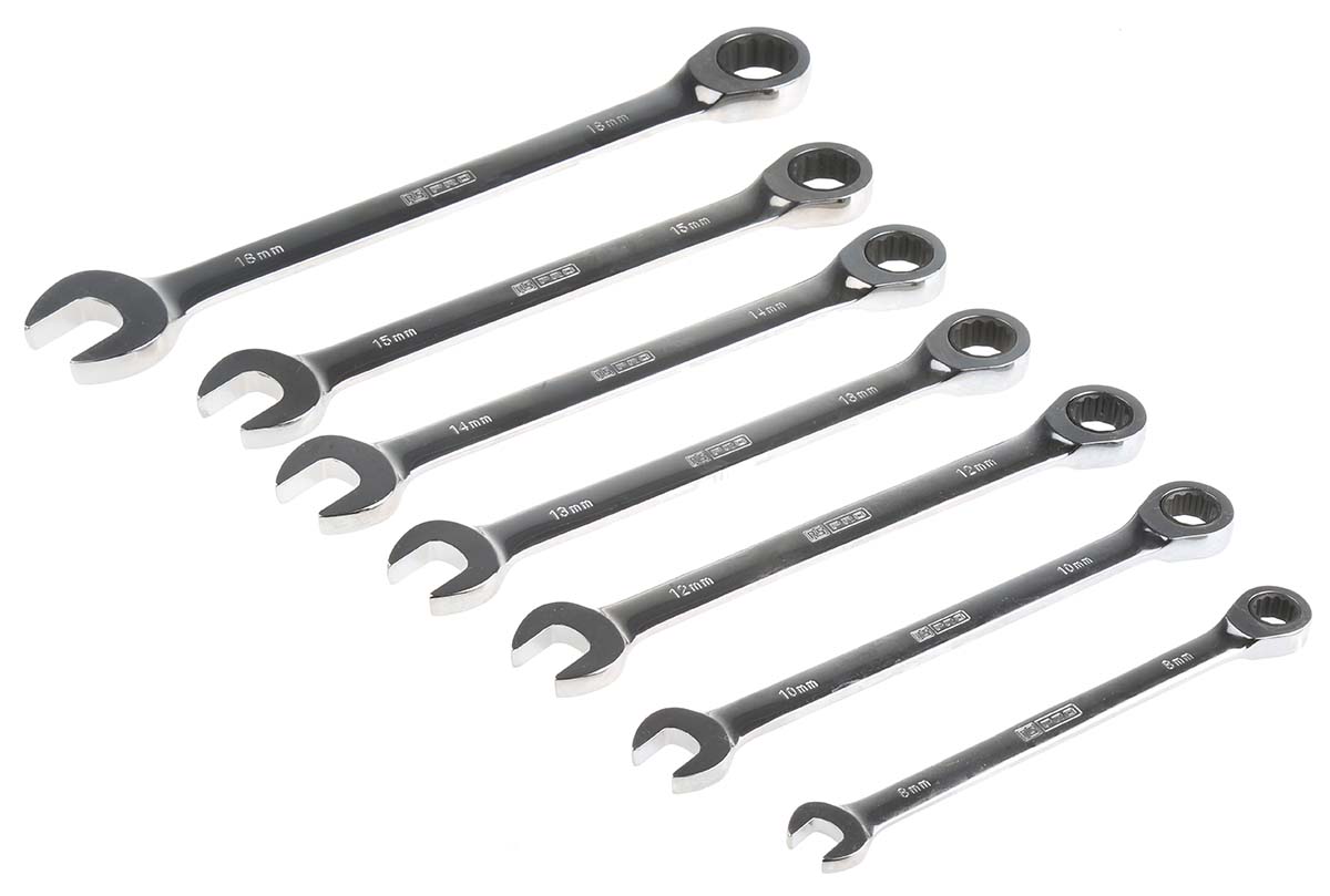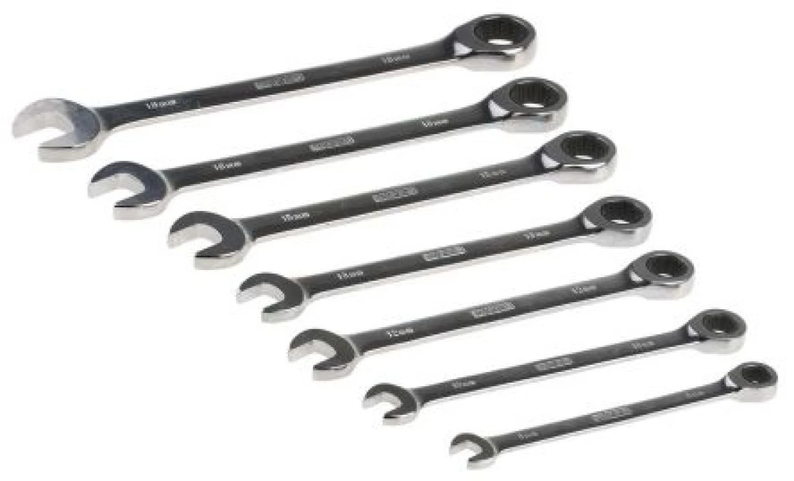 Zestaw narzędzi nastawnych Zestaw kluczy zapadkowych RS PRO 8 → 18 mm 7 szt. Stal chromowo-wanadowa