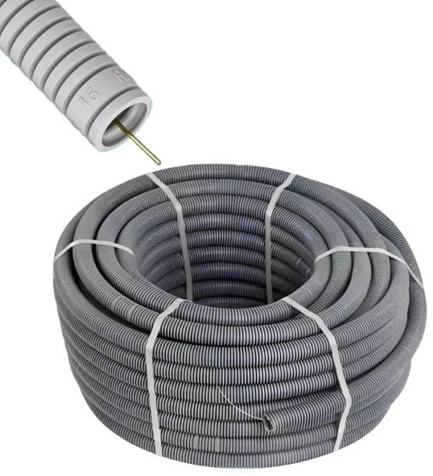 6. Rura karbowana elektroinstalacyjna RKGL 16/11mm giętka samogasnąca peszel z pilotem 320N PVC UV szara 25m 35.00