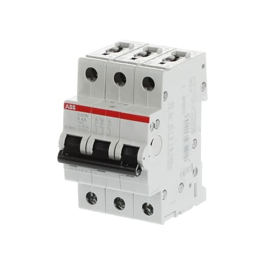 Wyłącznik nadprądowy MCB, Typ K, 3-biegunowy, 4A, 400V, 125V, ABB, S200M